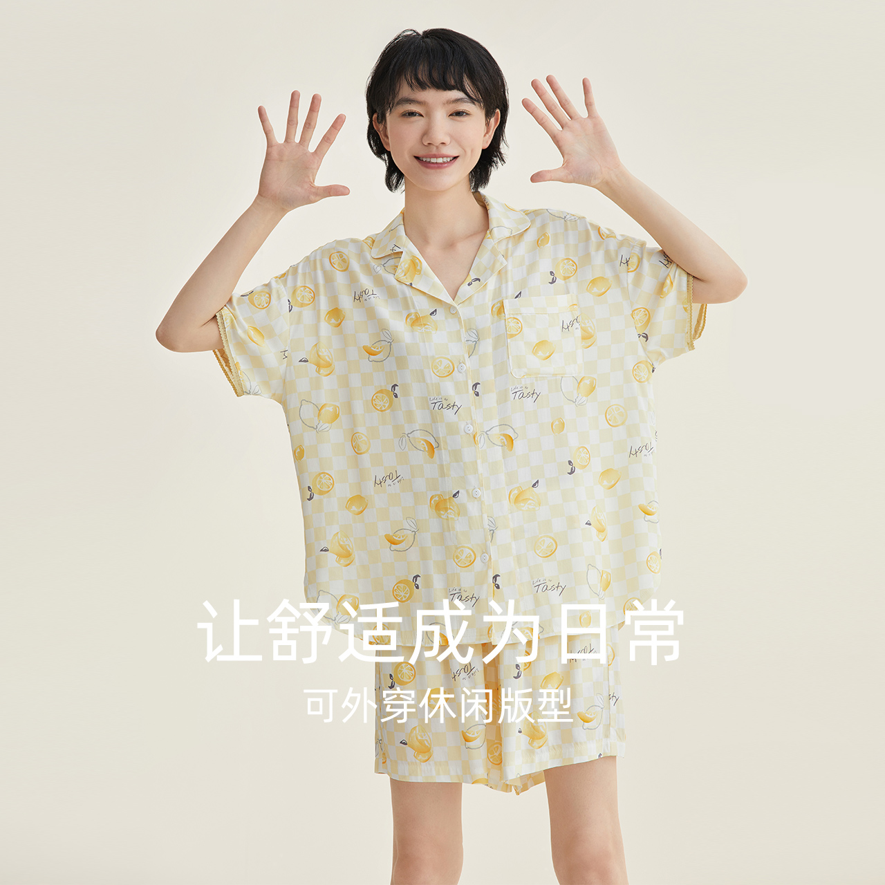 Red Bean Lady's short sleeve pajamas Tisile Lesser Fiber Ice Fiber Fruit Casual Summer Summer
