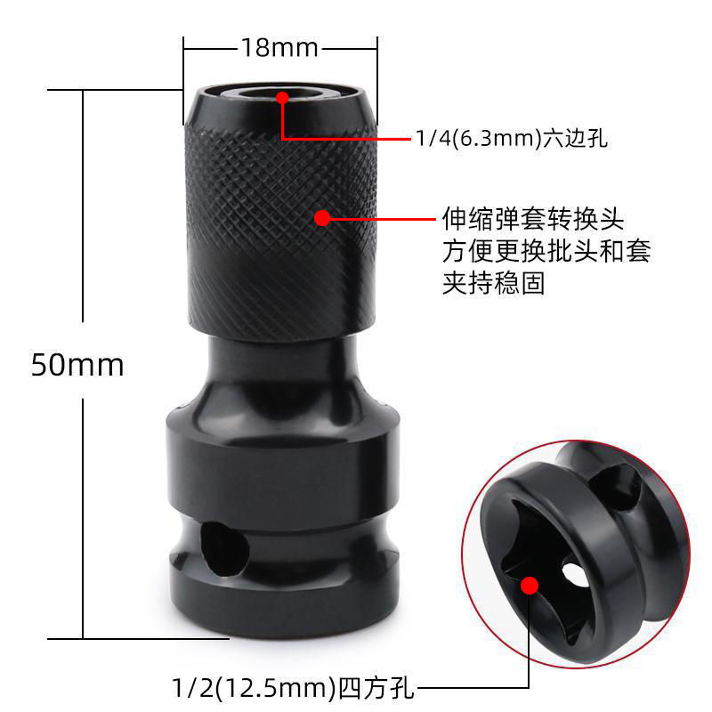 Source manufacturer telescopic bullet sleeve conversion head electric screwdriver conversion electric drill pneumatic wrench adapter 1 2 turns 1 4 sets