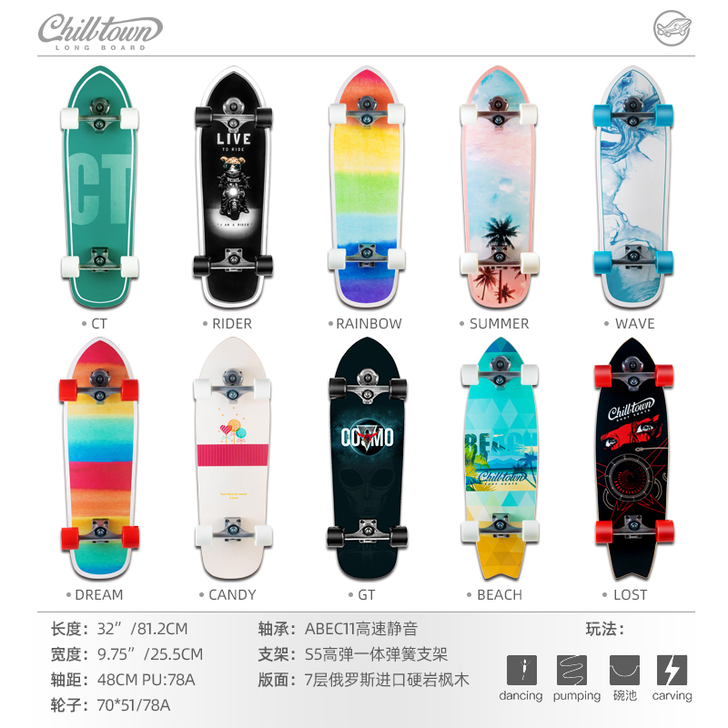 chilltown land surfboard professional spring bridge skateboard land punch board GTC free of pedalling skiing training yow-Taobao