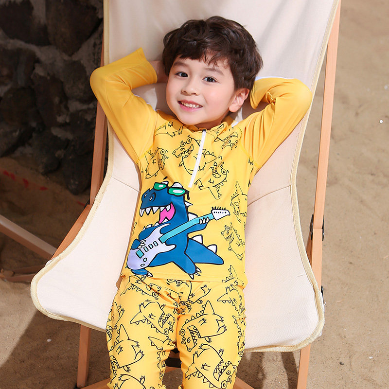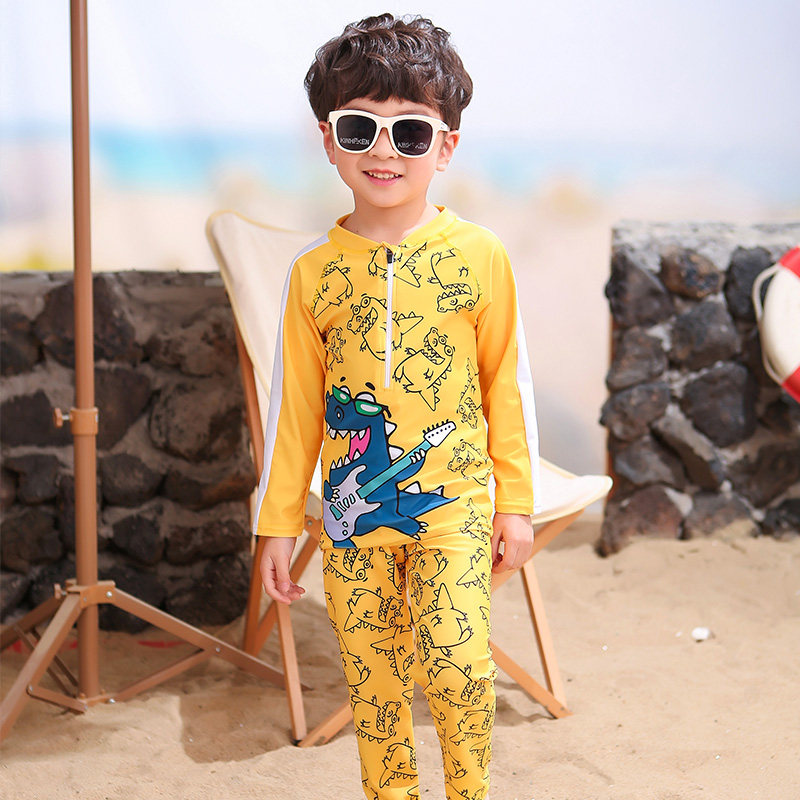 Children's bathing suit boy Two style 2022 Summer new teenagers CUHK boy long sleeve sunscreen bathing suit
