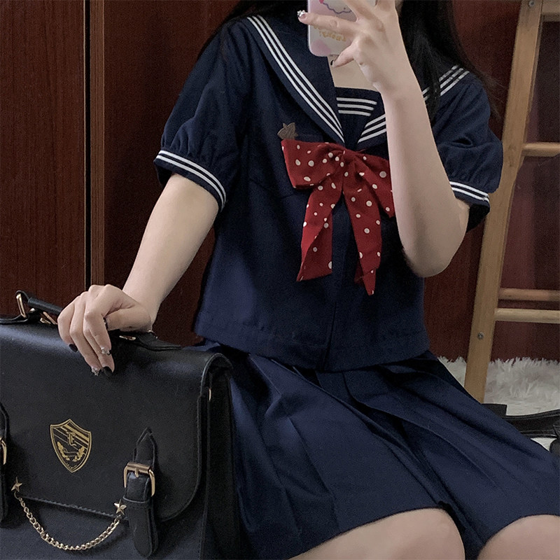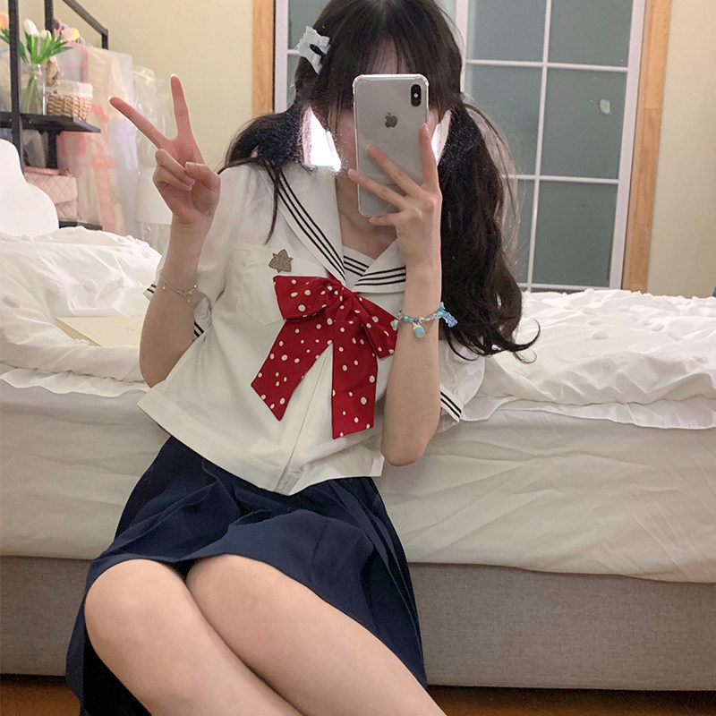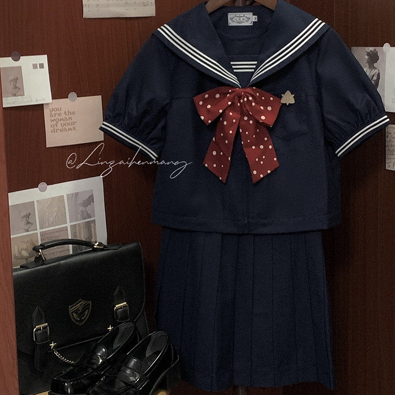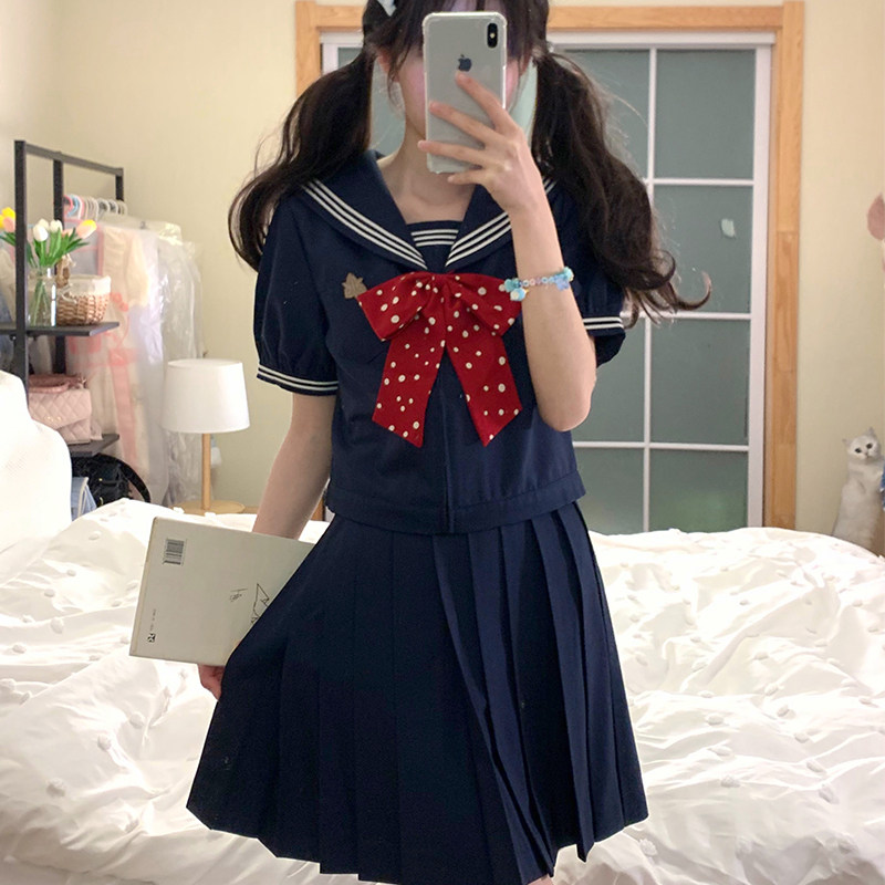 Free badge (Yuzi Middle School) JK original summer uniform uniform sailor short-sleeved skirt student