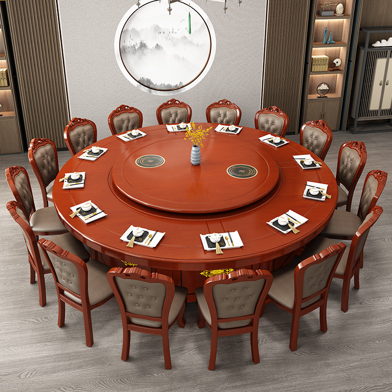 New Chinese hotel electric solid wood dining table and chair combination 18 people hot pot table restaurant modern 20 people rotating large round table
