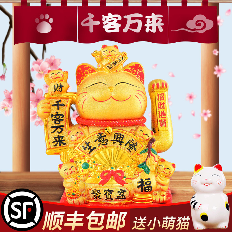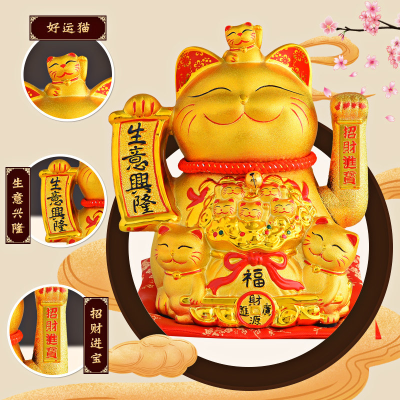 Large lucky cat decoration opening gift automatic beckoning living room home desktop golden ceramic fortune cat gift