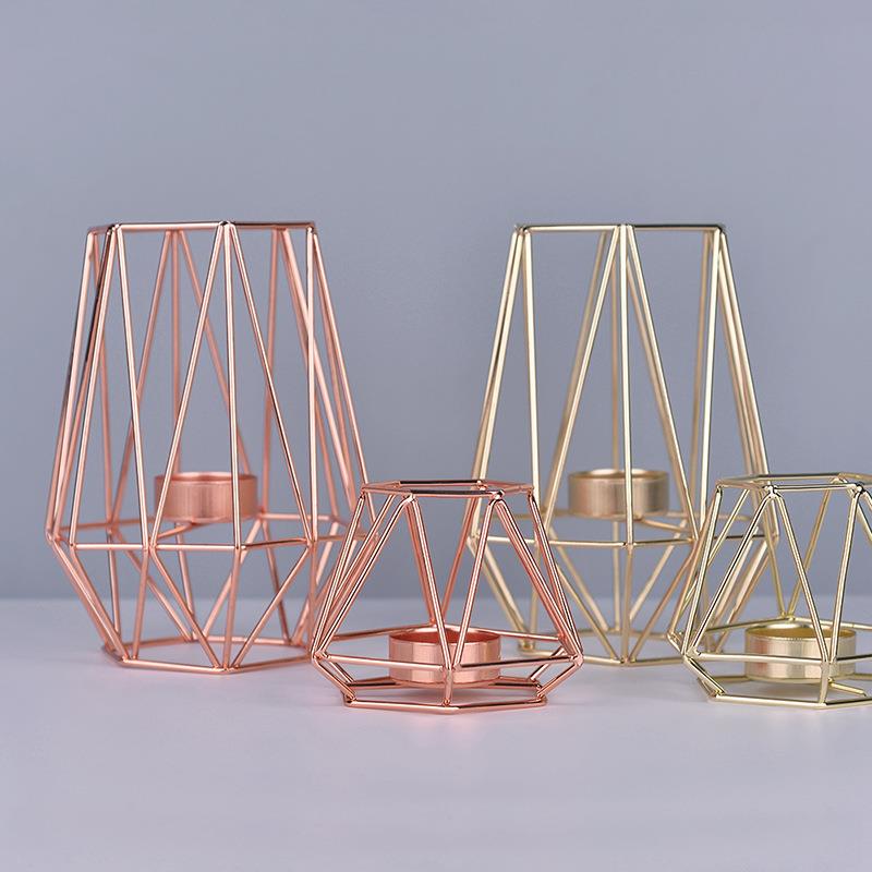 Eurostyle Golden Geometry Iron Art Candle Holder Creative Incense Plated Glass Wax Candle Holder Home Retro Decorative Swing