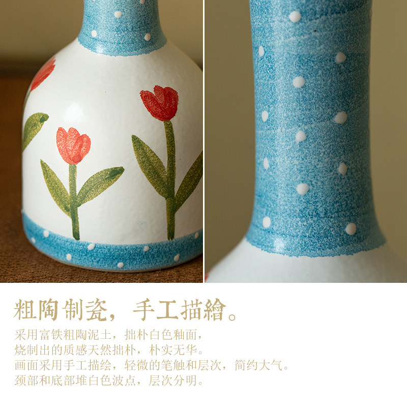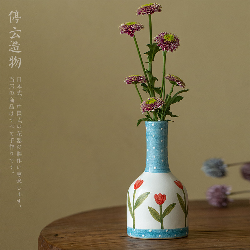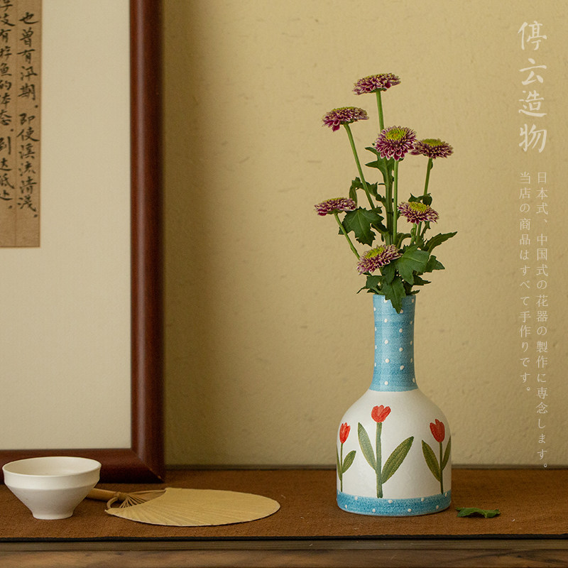 Hand-painted ceramic small vase Japanese retro ins living room dining table flower arrangement decoration wedding new house wedding room decorations