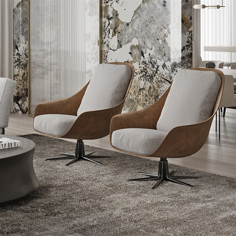 Modern minimalist light luxury single armchair designer shaped leather sofa chair living room balcony reception lounge chair