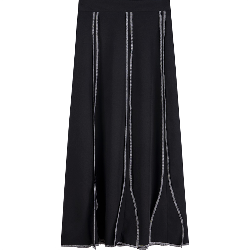 Design sense high waist mid-length version of half body dress Women Summer black Ming Line splicing 100 hitch a small crowdwork A-character dress