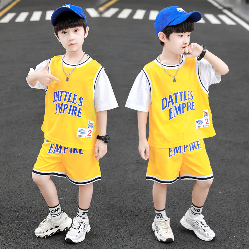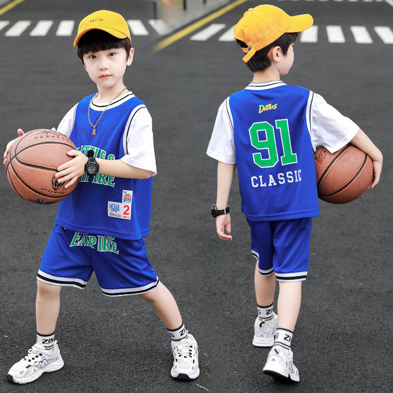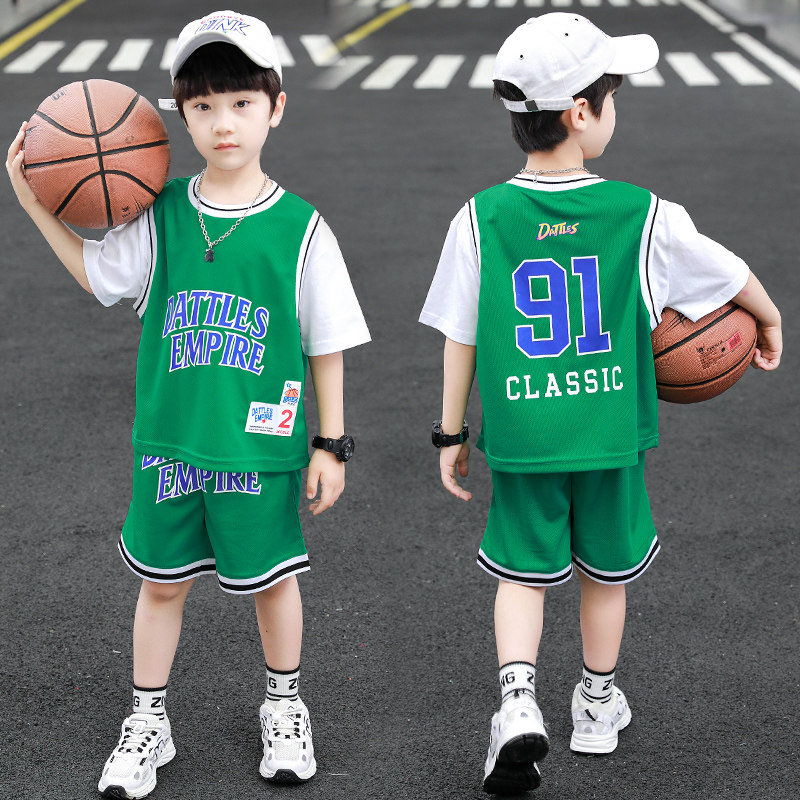 Boy Cool Shuai Children's basketball clothes suit 2022 new boys Summer sportswear short sleeves Two sets of damp