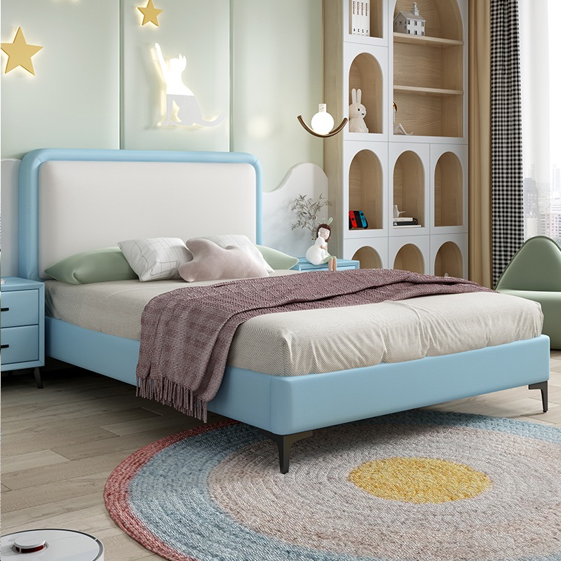 Children's bed boy light luxury leather bed modern minimalist net red bed girl princess bed teenage single bed storage bed