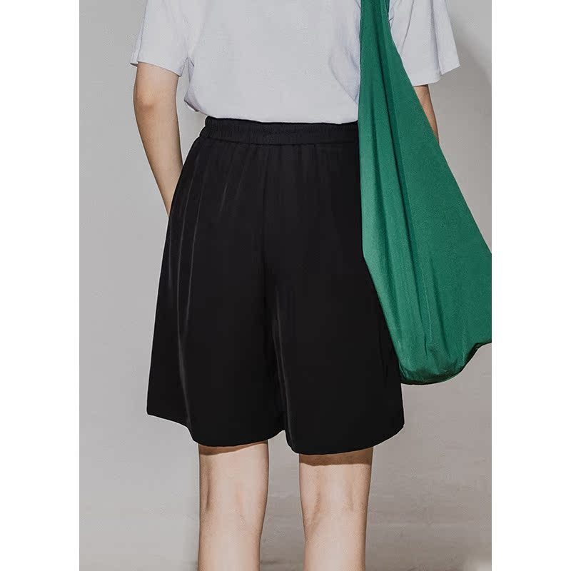 High waist open slit for casual 50% Pants Woman Summer Black Tightness Waist Pumping Rope Loose slim fit straight cylinder 50% pants