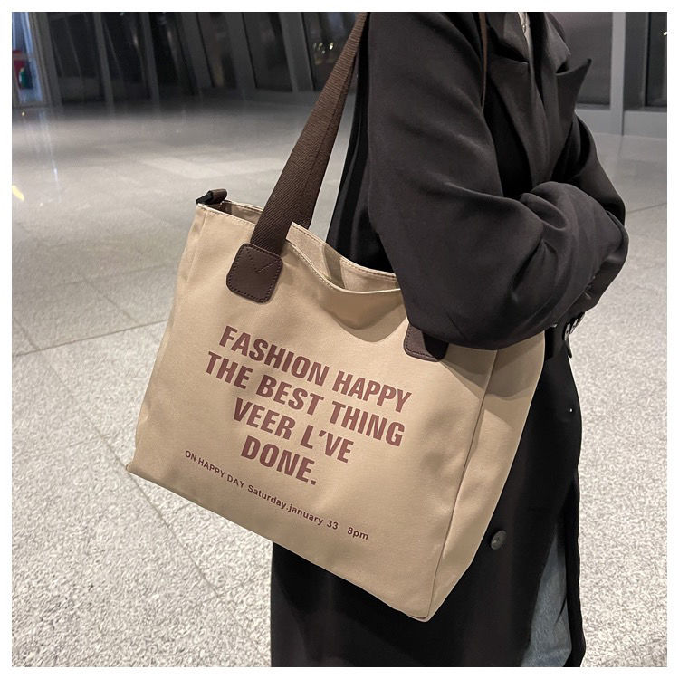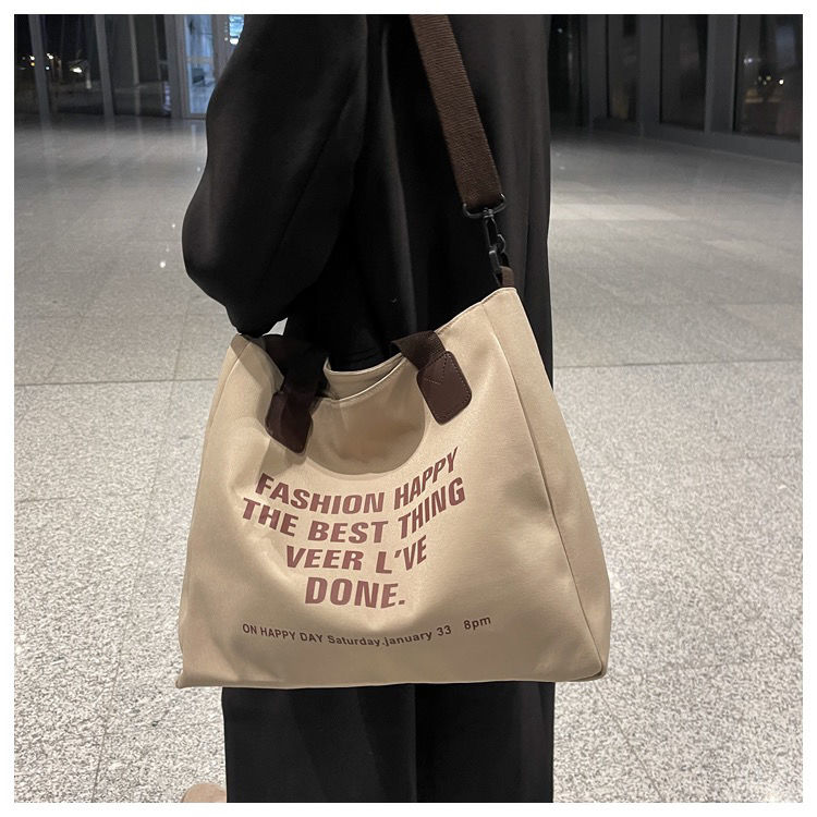 2022 Spring and summer new large - capacity canvas bag simple fashion handbill slip shoulder - bag letter printed Tot bag