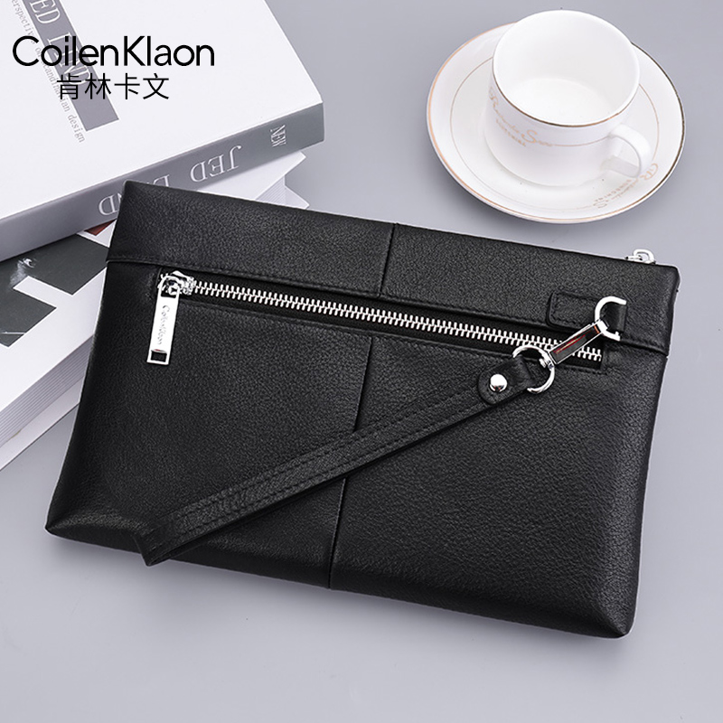 CoilenKlaon men's handbag genuine leather Pure Bull Leather Tide Card Business Casual Hands bag Men's handbag Bag Letter Enveloping