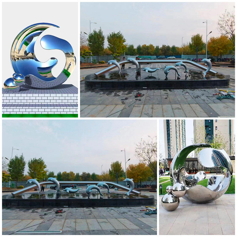 Stainless steel garden landscape sculpture custom outdoor large metal aluminum mirror art square abstract ornaments