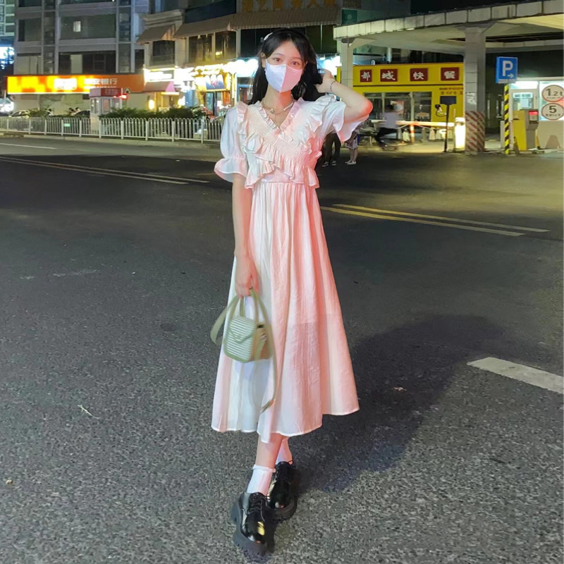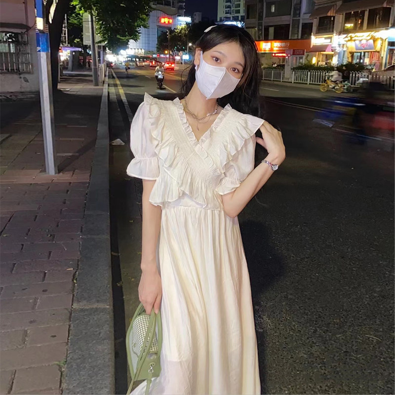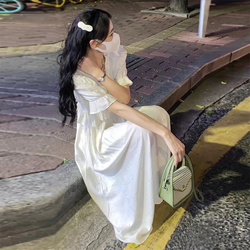 2022 new white French Hepburn style super fairy dress short-sleeved women's summer retro sweet first love pure desire dress - Taobao