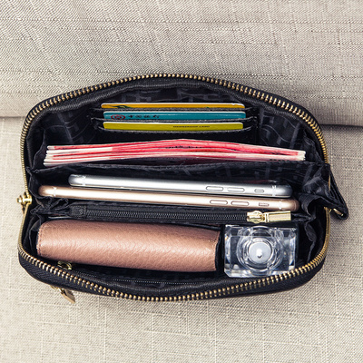 Hong Kong handbag female long version 2022 new trendy can put mobile phone zipper leather small bag handbag female handbag