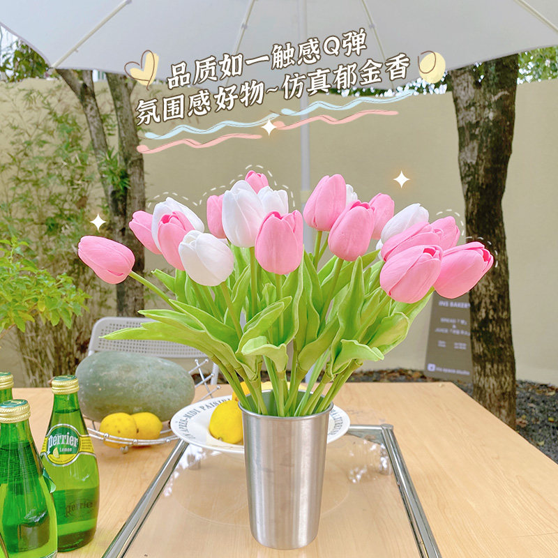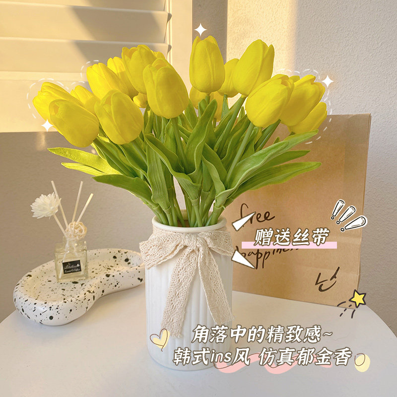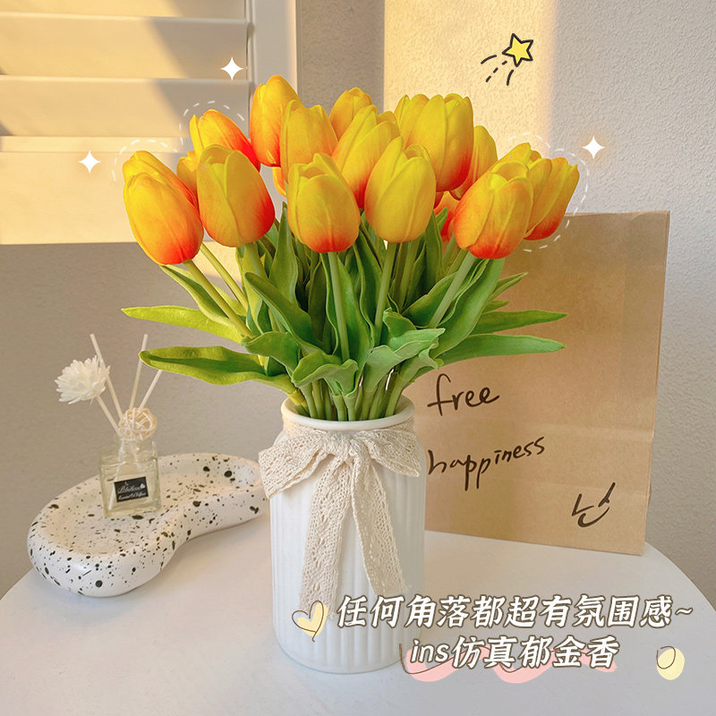 ins simulation flower tulip high-end fake flower Nordic living room table decoration decorative bouquet home dried flower decoration