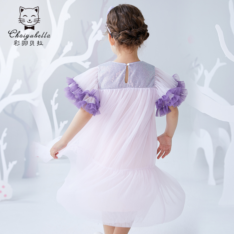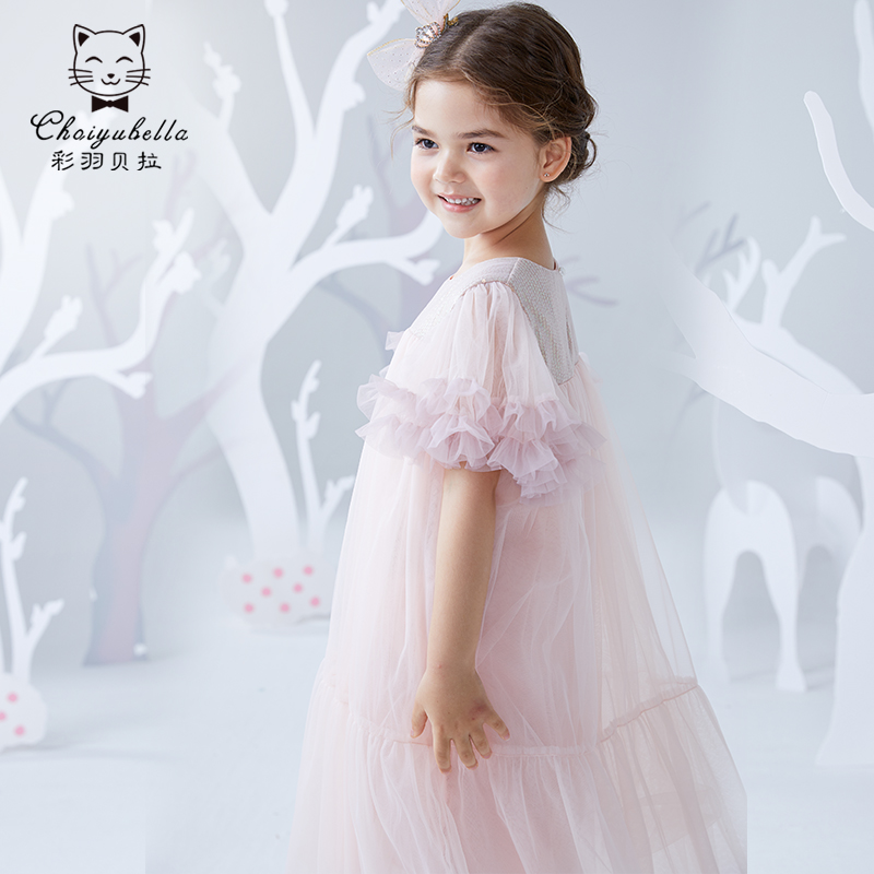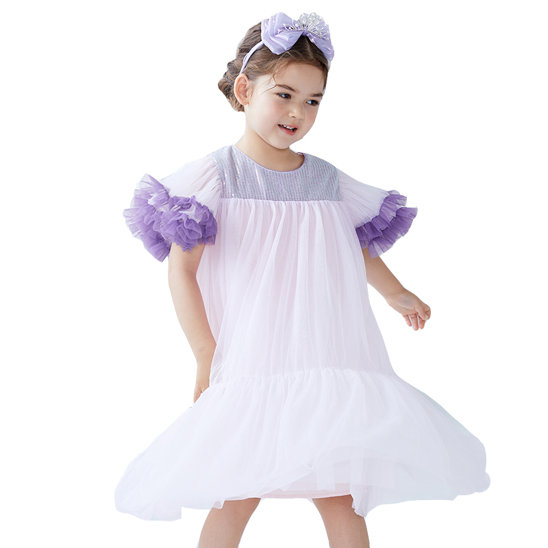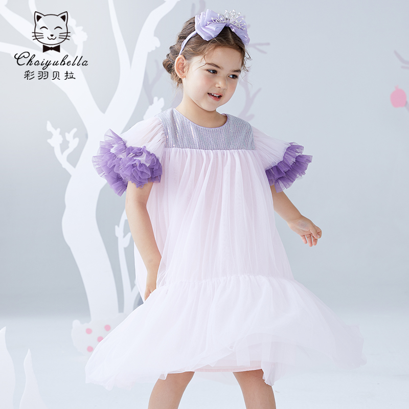 Girl Ocean Dress Summer New Princess Dress Bright Sheet Fluffy Yarn Skirt Children Little Girl Scout Summer Dresses