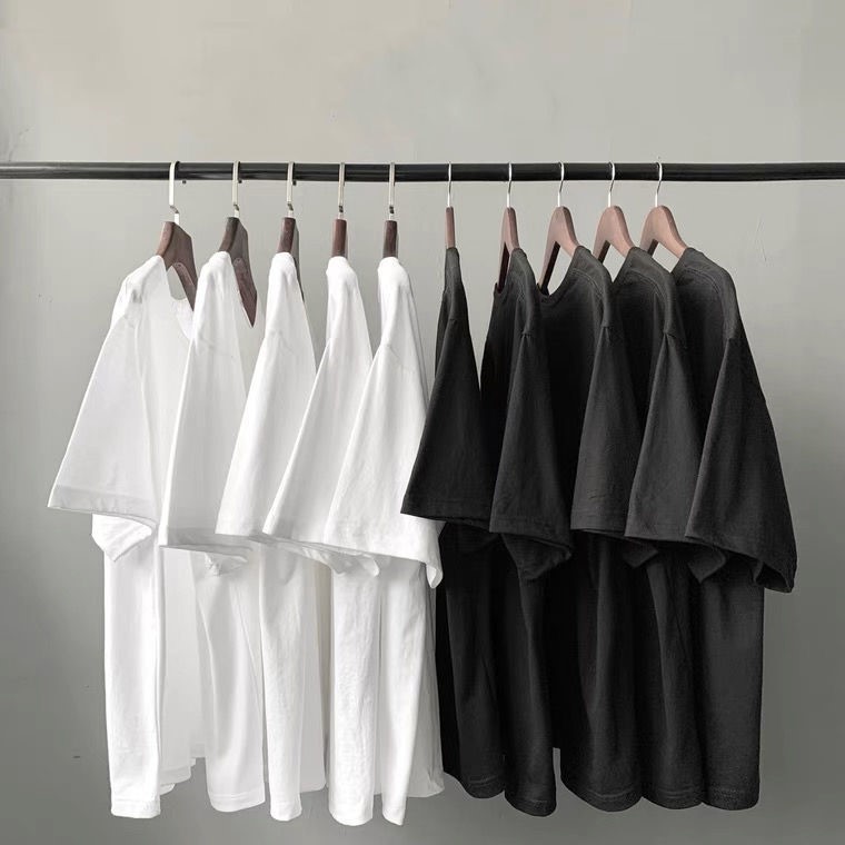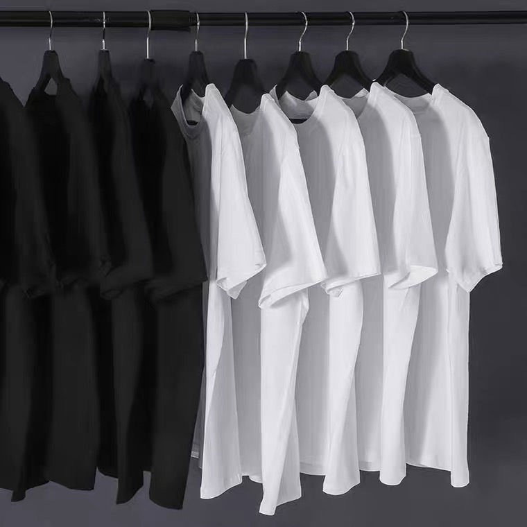 Summer short sleeve T-shirt man black and white casual half sleeve round collar Nets on the bottom shirt lovers loose T-shirt tide