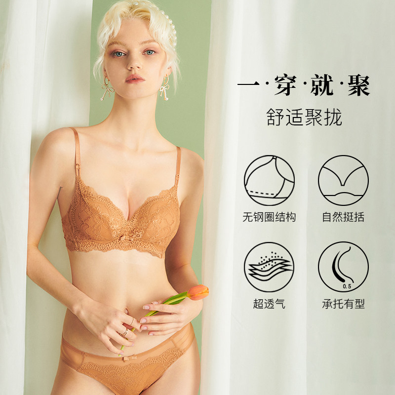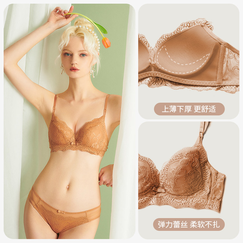 Venus blessings French lingerie women's thin breast slim breasted with no steel ring triangular cup Sexy lace little cute hood
