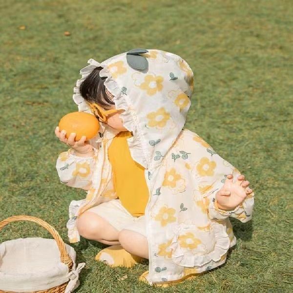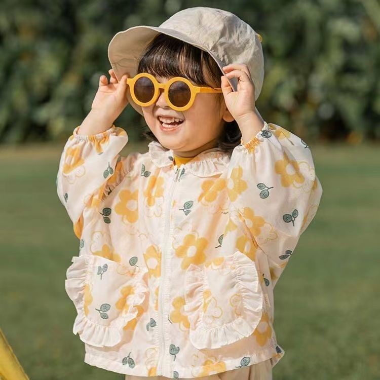 Girls' pastoral style sunscreen clothing lace 2022 raglan sleeves children's summer anti-UV breathable hooded thin coat