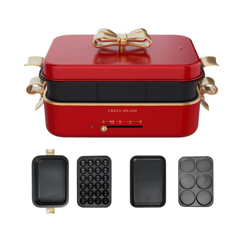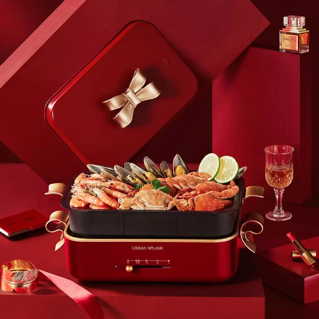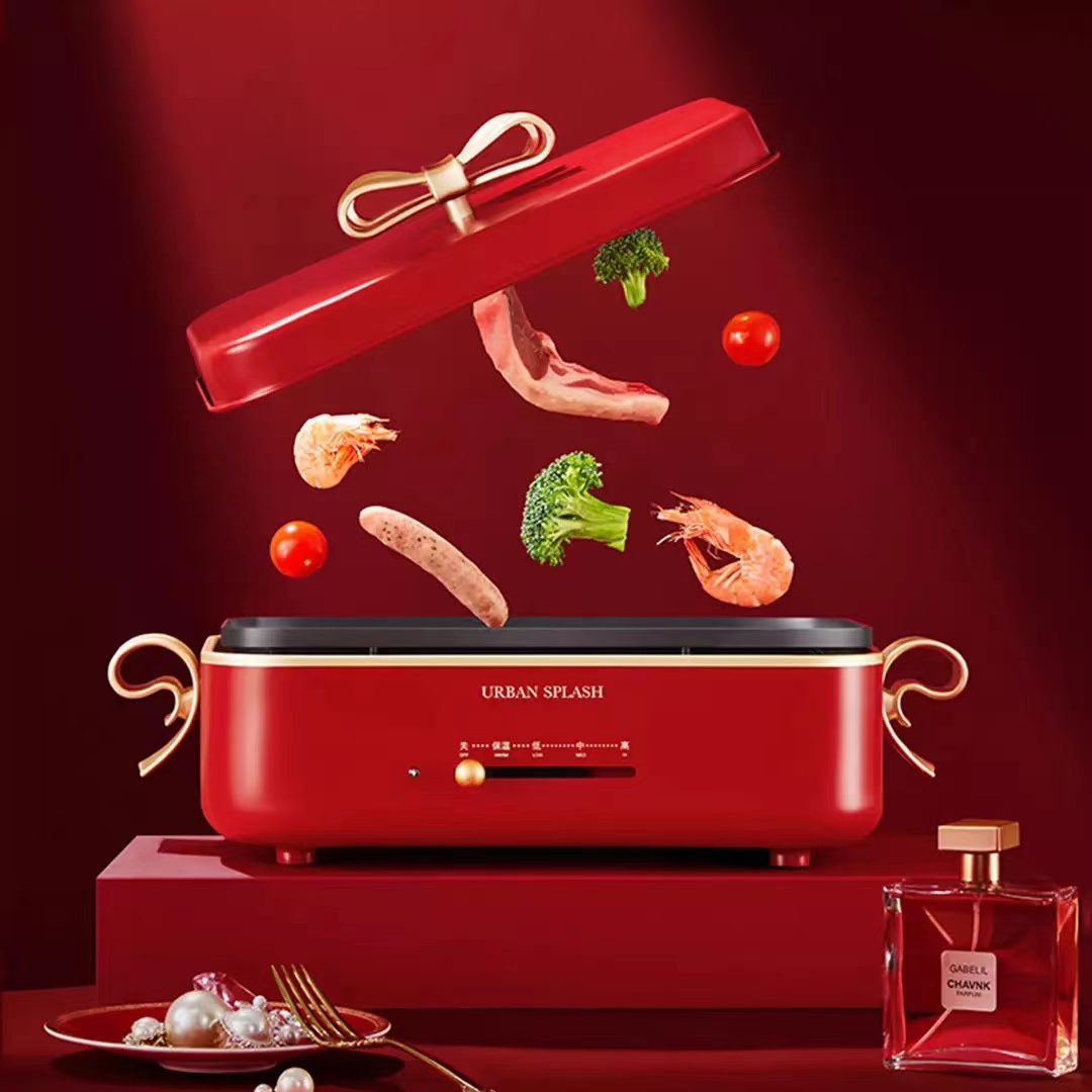 URBAN SPLASH multi-function cooking pot retro red single plate intelligent cooking and frying all-in-one barbecue stove electric hot pot