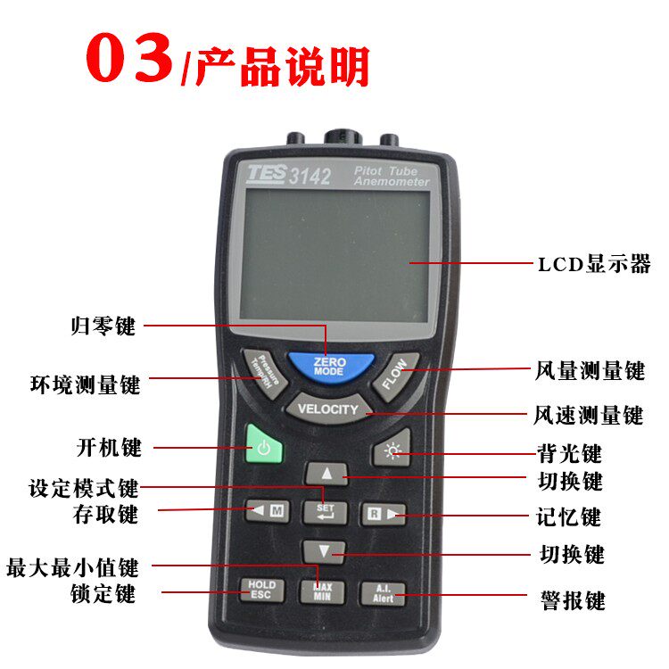 Taiwan Taishi Leather Tube Anemometer Air Volume MicroManometer Thermal High Precision Anemometer TES3142 3142U