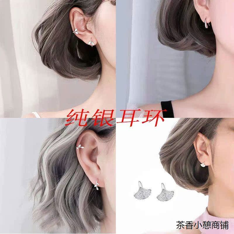 Earrings sterling silver s925 earrings earrings female simple ear acupuncture generous small fresh leaves budding ear hook earrings temperament personality