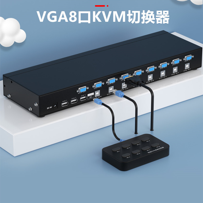 vga8 mouth kvm switcher rack USB multiple computers with shared one display Co-hearer 8 into 1 out computer host connected with the same display high-definition video conversion respectively-Tao