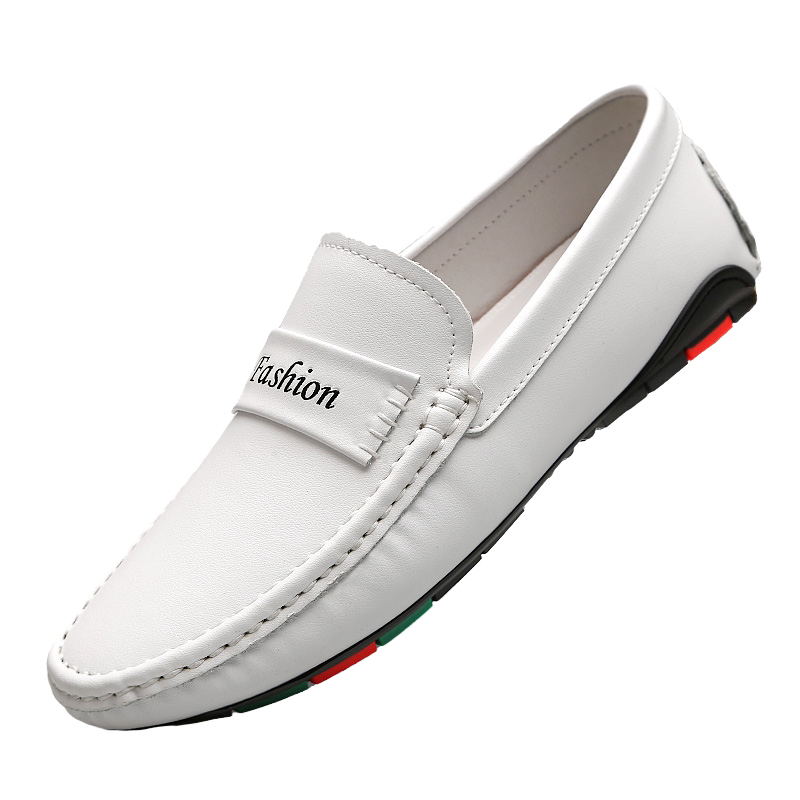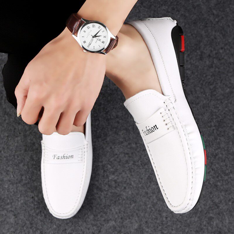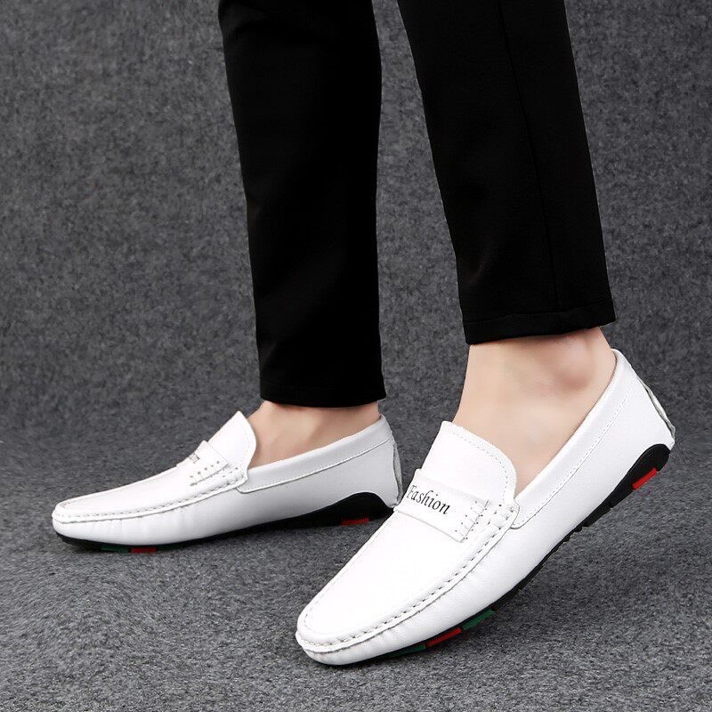 Forest Wolf Men White Bean Shoes Head Coal Leather Soft Soft Soft Soft Surface with a Style Driving Shoes