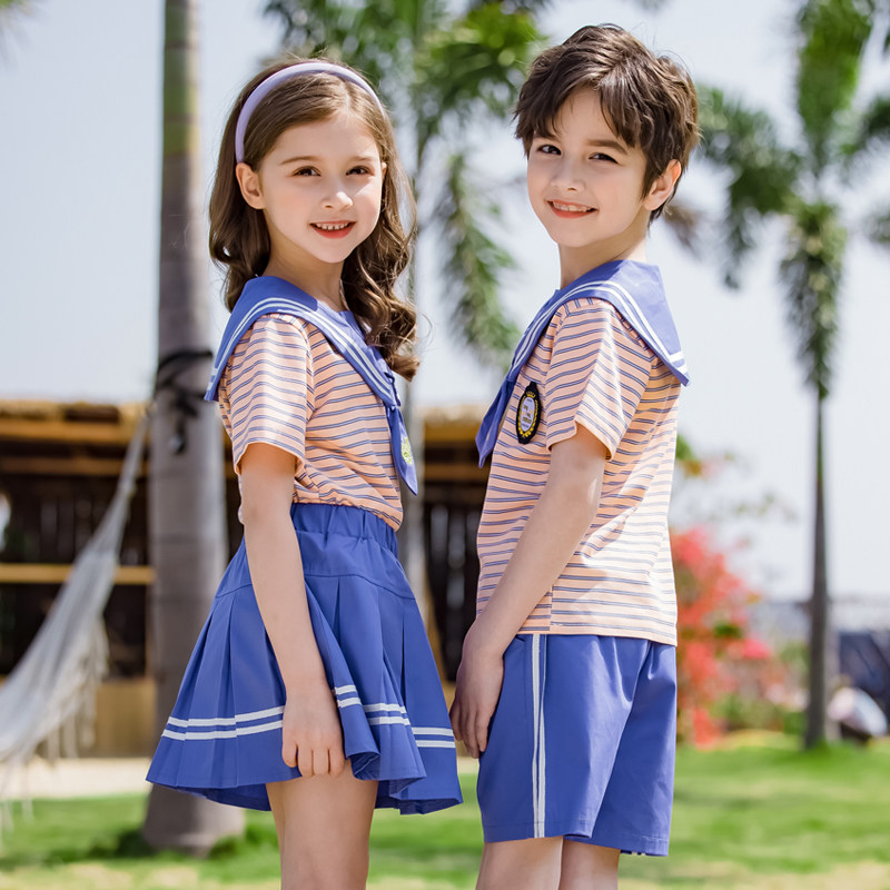 2022 new college style kindergarten uniform primary school students class uniform striped short-sleeved suit graduation season performance clothing