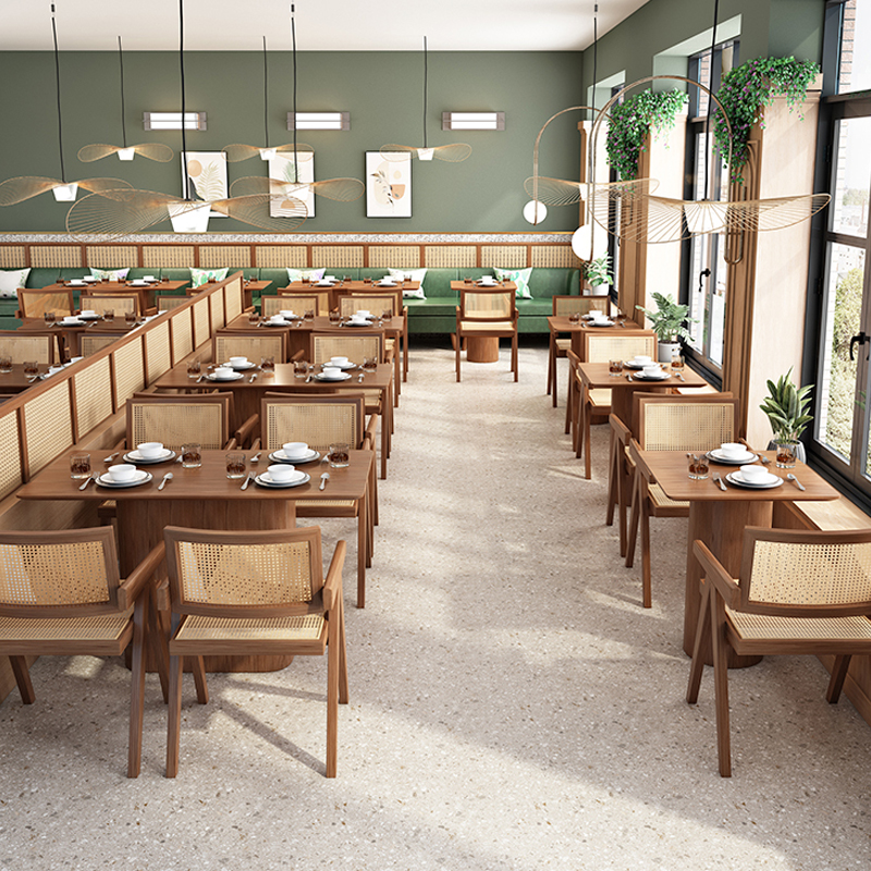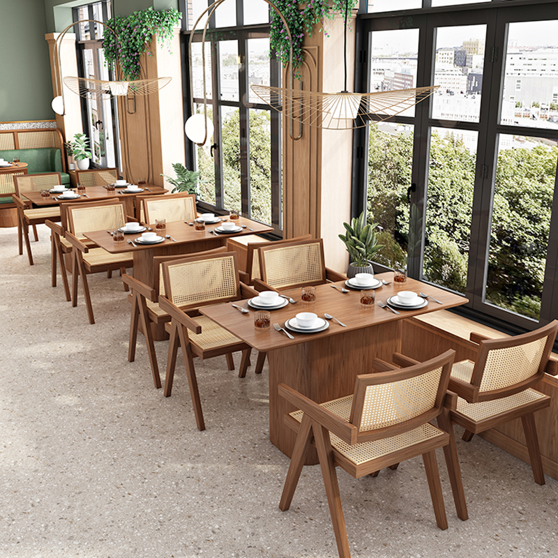 Western food cafe against the wall card seat Japanese food shop rattan sofa milk tea cake hot pot restaurant solid wood table and chair combination