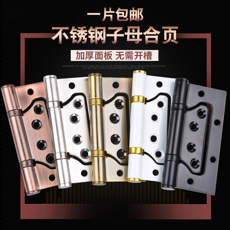Free-slotted 4-inch primary-secondary hinge indoor home wood door 5 inch mute thickened stainless steel hinge five gold accessories