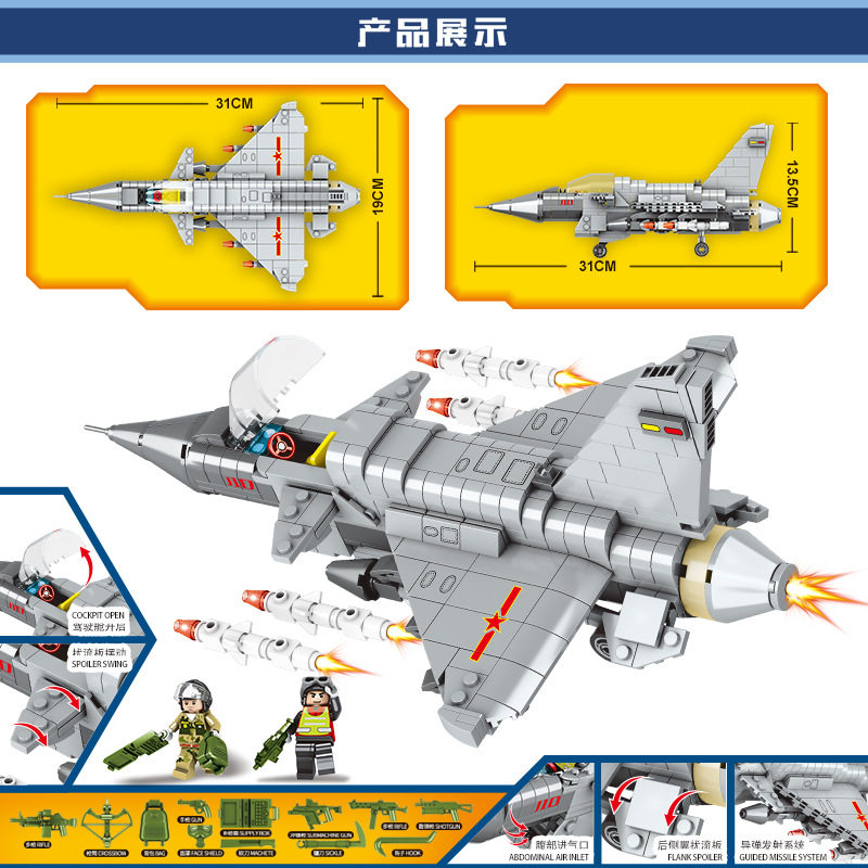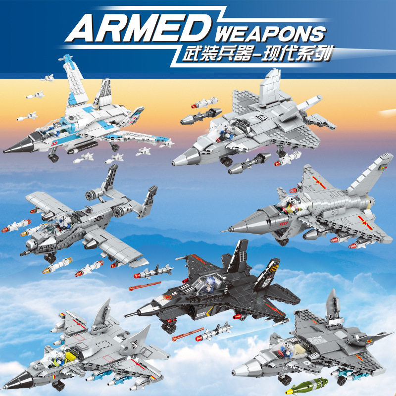 New Interactive Assembly Building Blocks Military Aviation Armed Fighters Series DIY Granular Children Puzzle Toy Gifts