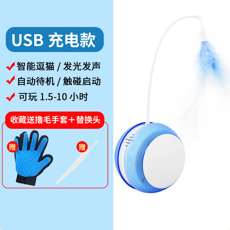 Automatic Cat Teaser Toy Ball Feather Electric Cat Teaser Stick Intelligent Voice Relief Boredom Charging Self-Happy Artifact Sports Puzzle