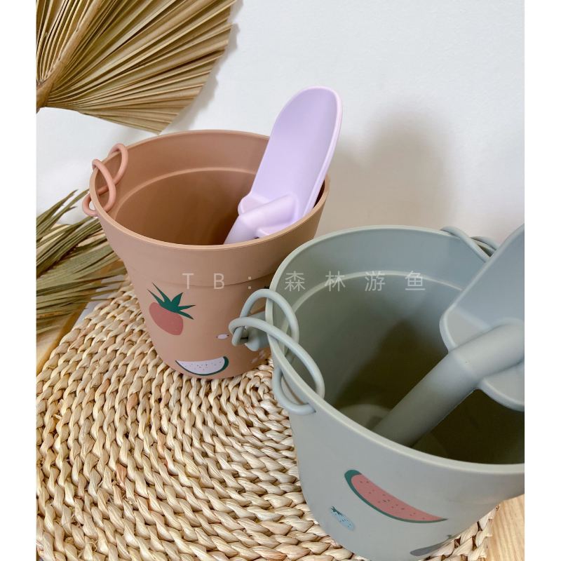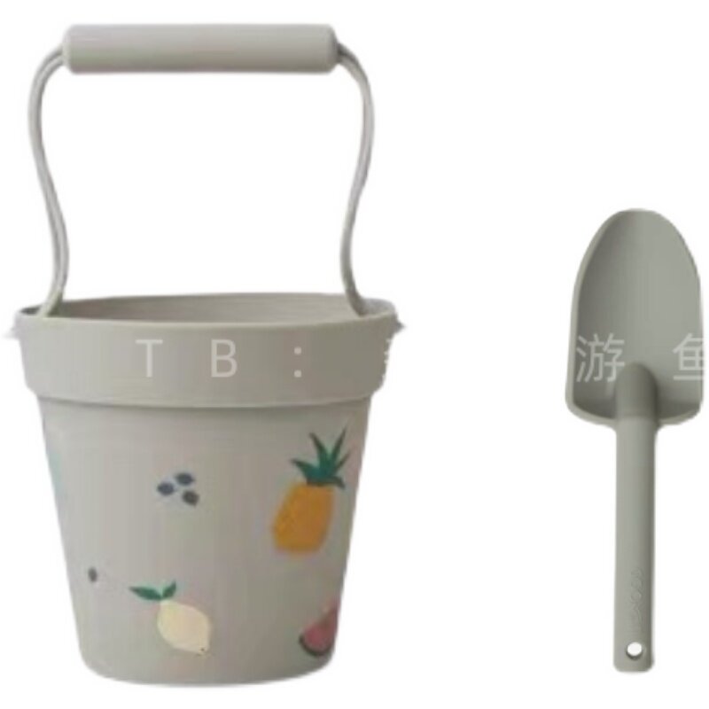 Tourist fish export quality Danish silicone beach toy children dig sandbarrel shovel digging tools