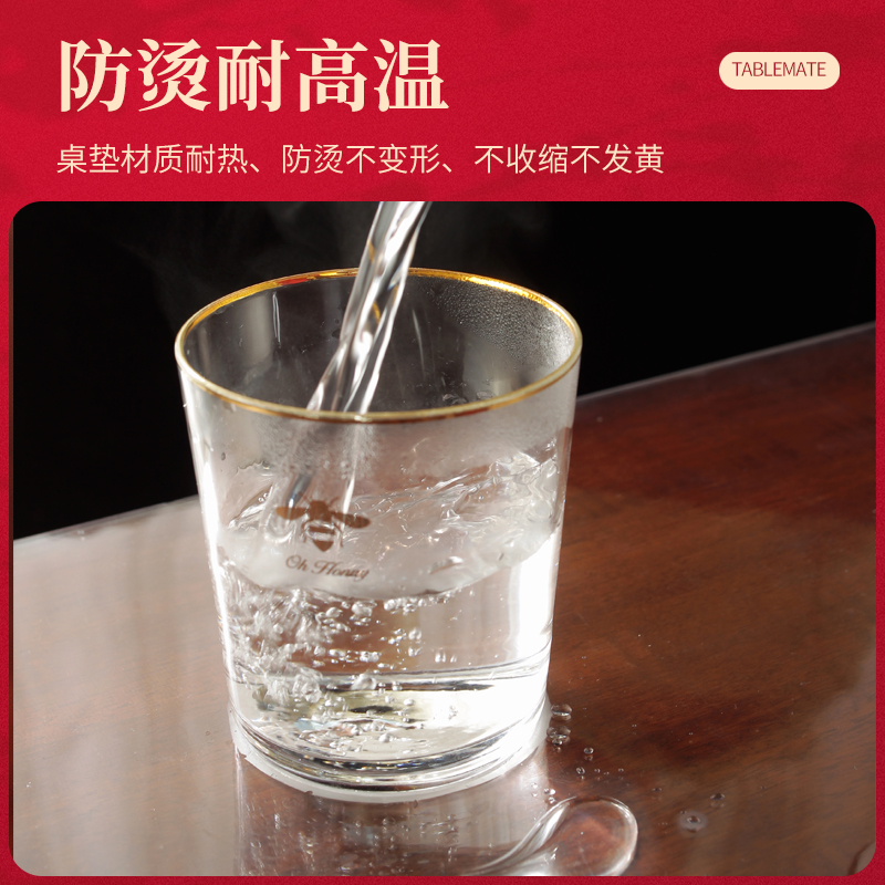 New Chinese red wood furniture table mat waterproof and anti-burn pvc transparent soft glass solid wood table cloth