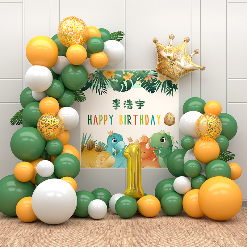 Dinosaur theme birthday decoration scene layout boys and girls baby one-year-old children's balloon party background wall