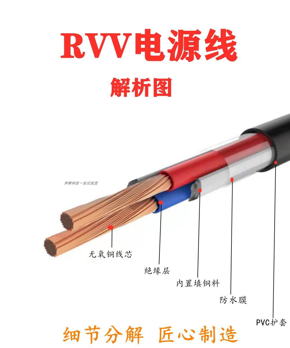 Copper wire household rvvv power core 2 core 0 0 75 1 0 1 5 square sheath line oxygen-free copper