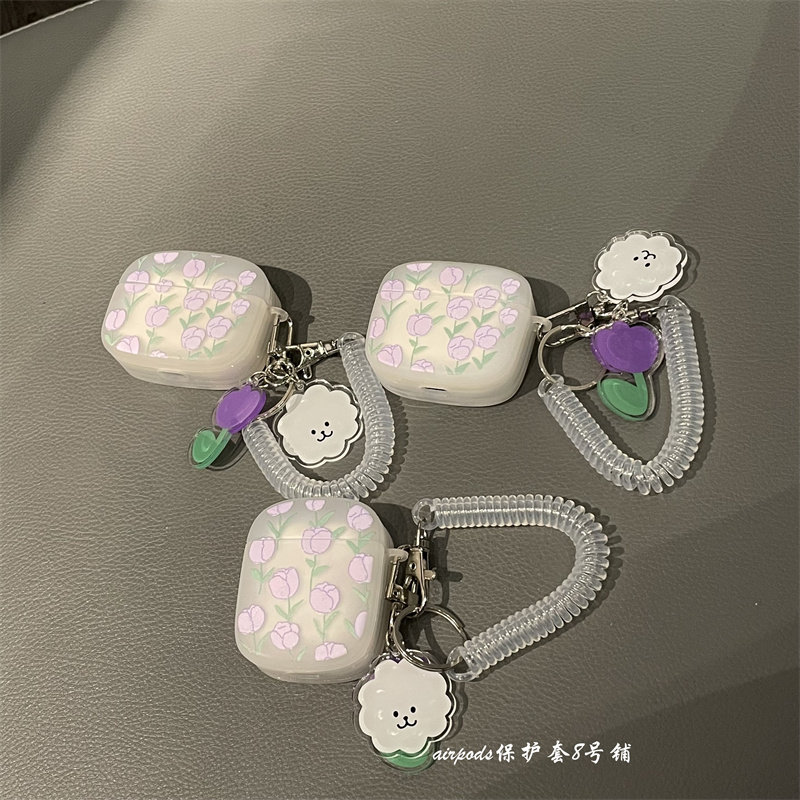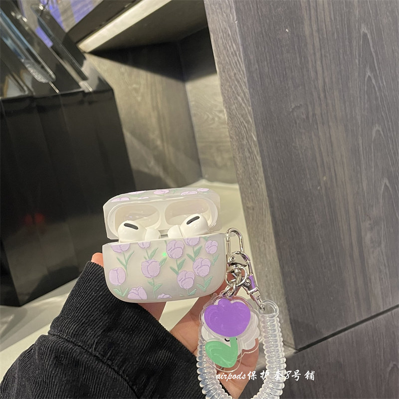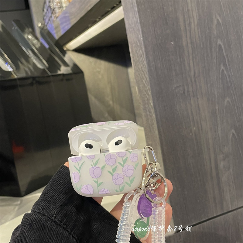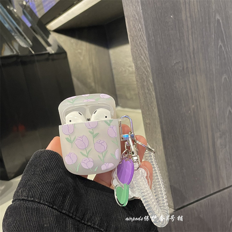 Purple Tulip Flowers 1 2 Generations Of Headphone Shell Hanging Accessories Violet Tulip Flowers Headphone Shell Hanging Accessories Purple Tulip Flower Headphone Shell airpods3