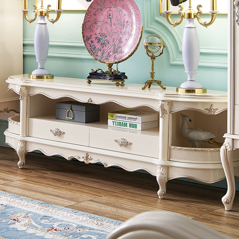 European-style minimalist TV cabinet modern solid wood TV cabinet small apartment living room French carved coffee table TV cabinet combination