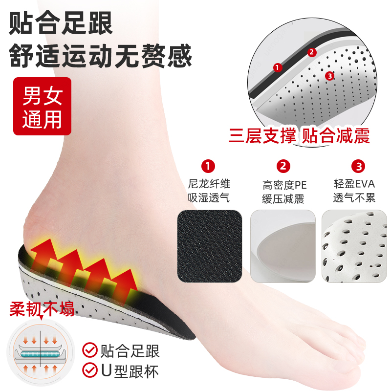 German inner heightening insole female Martin boots special heightening pad male invisible sponge not tired feet artifact soft half pad