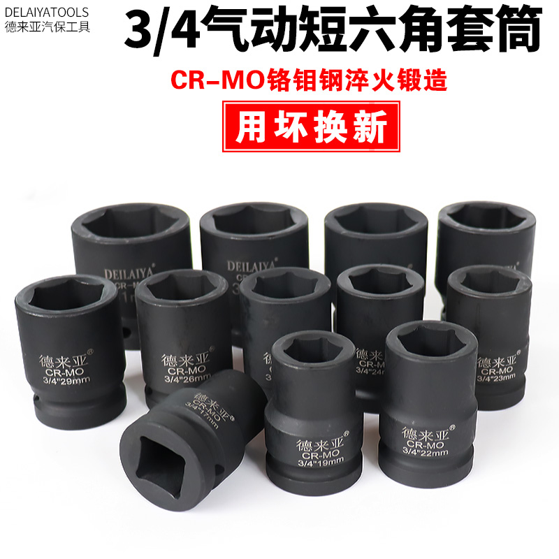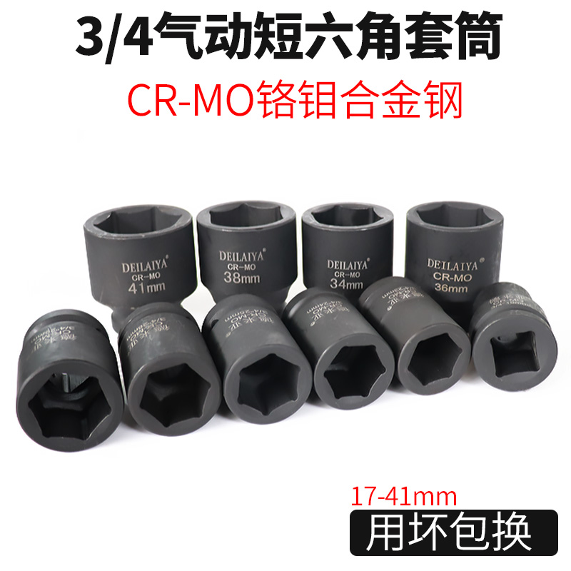 Pneumatic Wrench Sleeves 3 4 Series sleeves Head Standard Pneumatic Short Hexagonal Sleeve Heavy Outer hexagonal sleeves 17-41mm