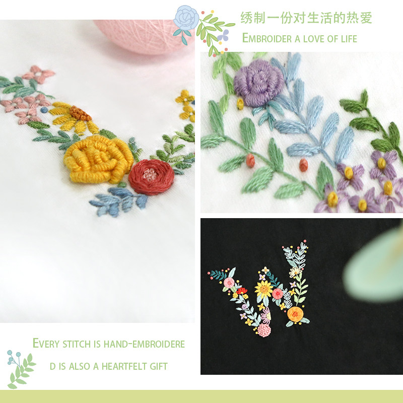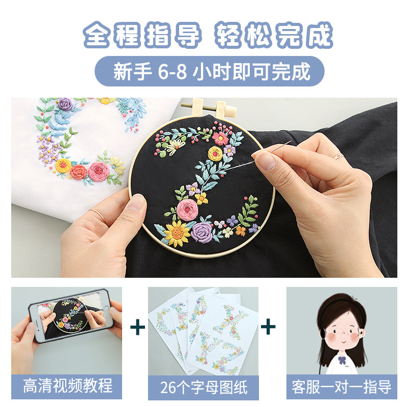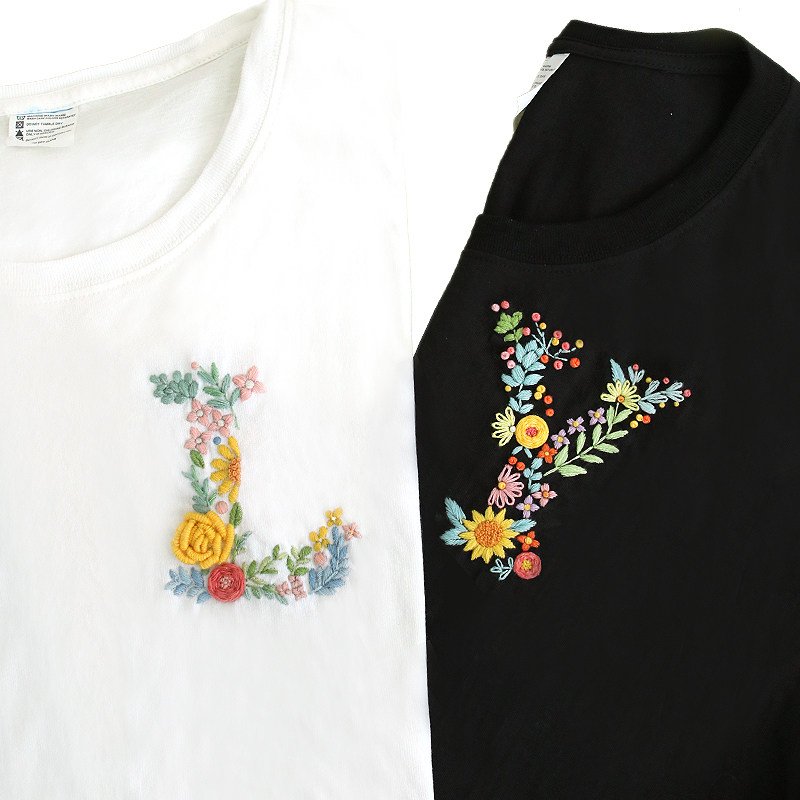 Embroidered diy letters embroidered clothes lovers T-shirt beginue handmade self-embroidered short sleeve sending boyfriend gift material bag