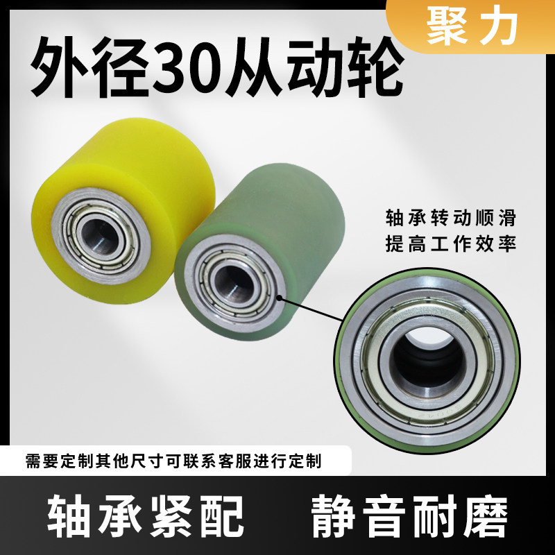 Rubber-coated roller outer diameter 30mm polyurethane PU rubber wheel silent wear-resistant non-powered anti-static roller can be customized