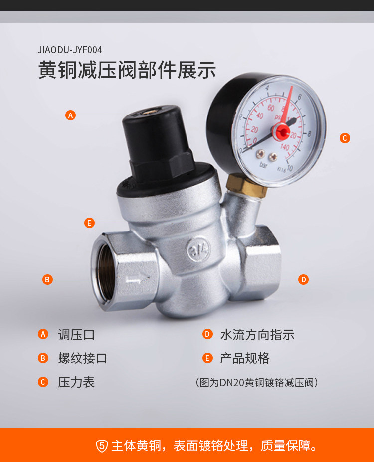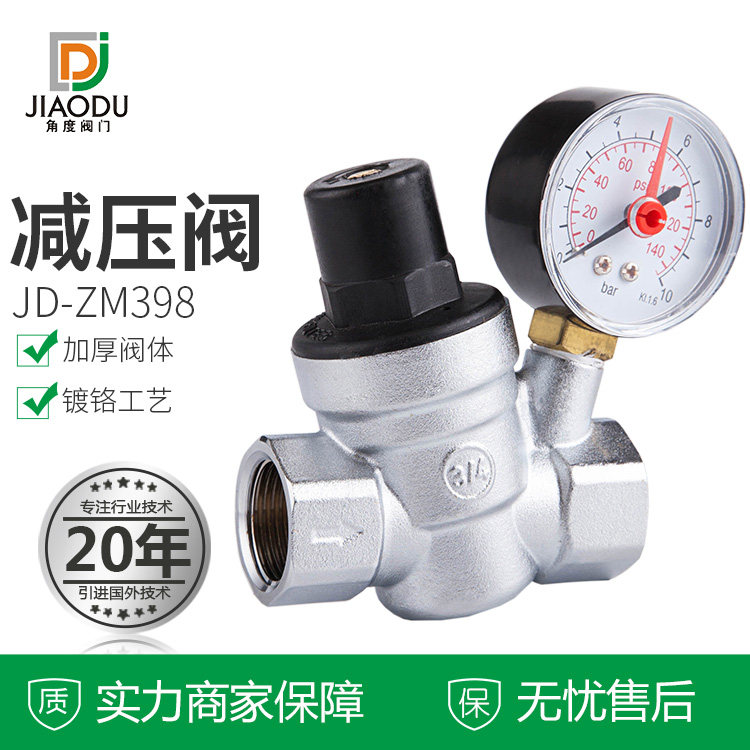 Yuhuan angle valve Brass chrome-plated pressure reducing valve with watch community high-rise water pressure regulating valve pressure relief valve