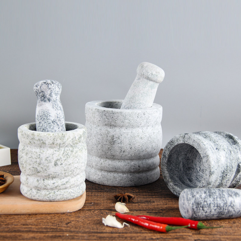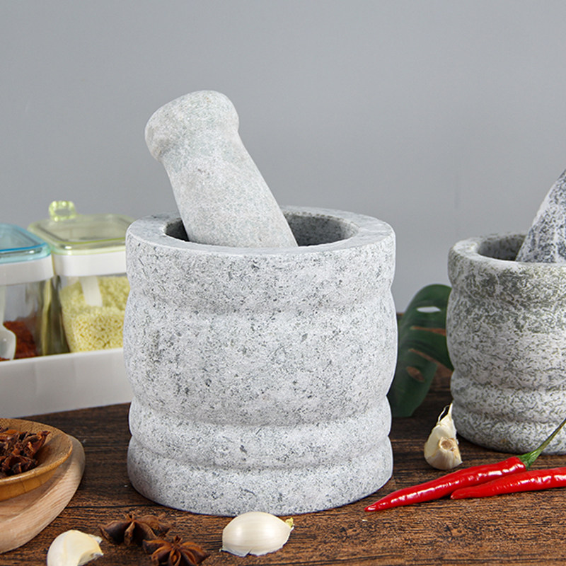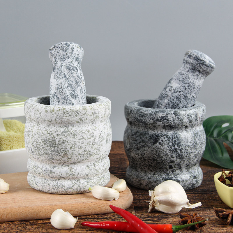 Natural Green Stone Press Garlic Instrumental Stone Mortar Home Mashing Jar Grinding Machine Garlic Mortar Peel Garlic Machine Pressed Garlic Garlic mud Sub-food