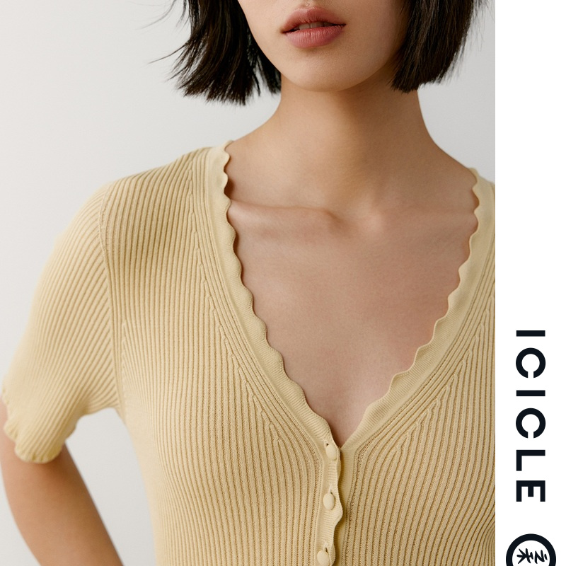 ICICLE Zhihe Women's Clothing 2022 New Cotton Knitted Ruffle Trim Slim Sleeve Short-sleeved Cardigan
