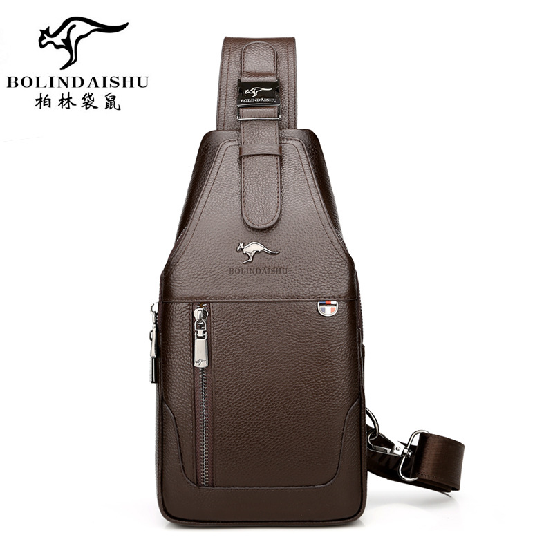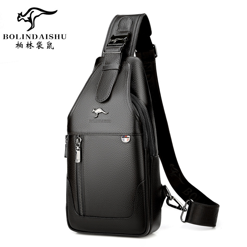 Berlin kangaroo men's chest bag cowhide men's messenger bag casual shoulder bag men's leather men's bags backpack men - Taobao