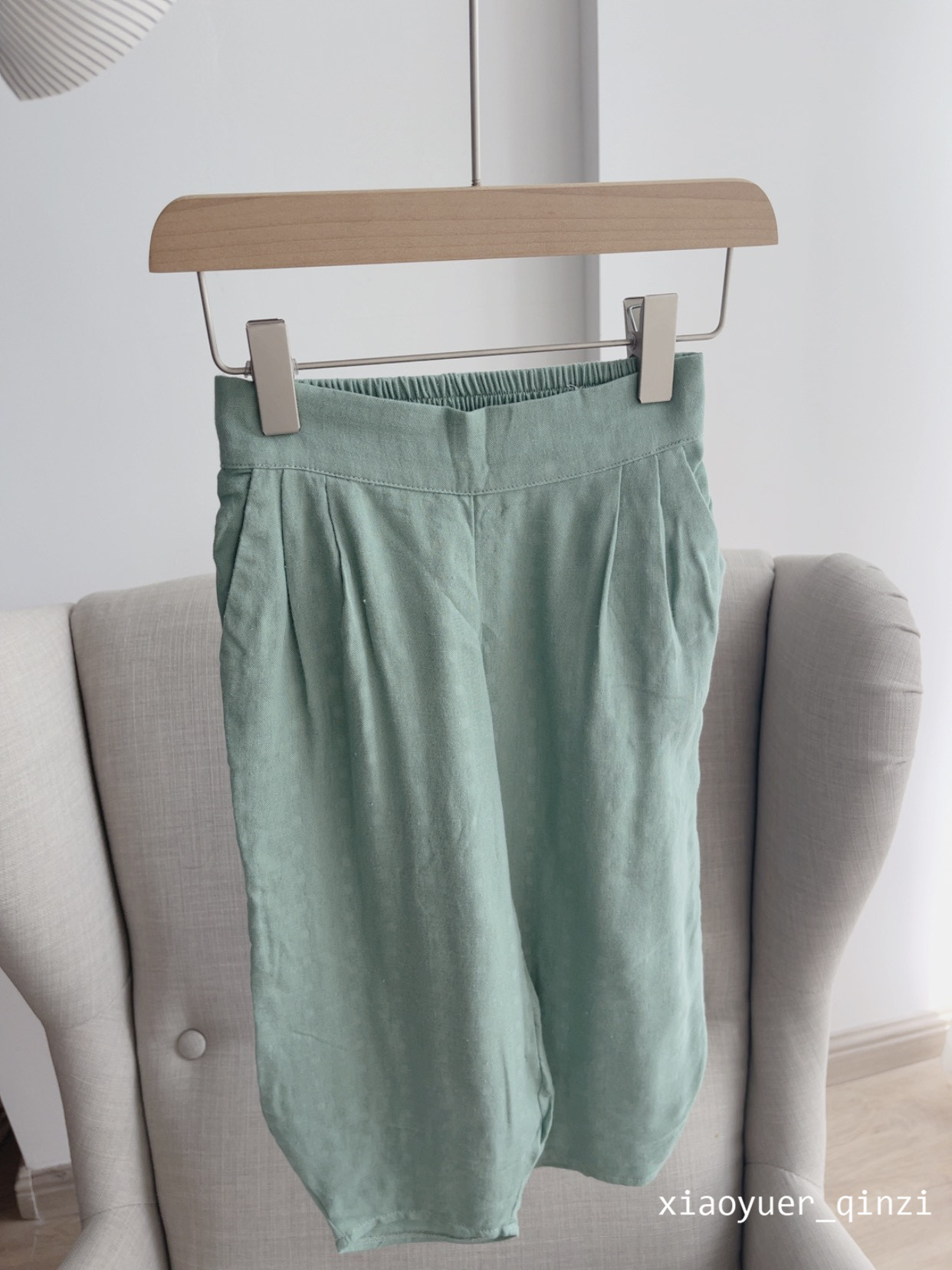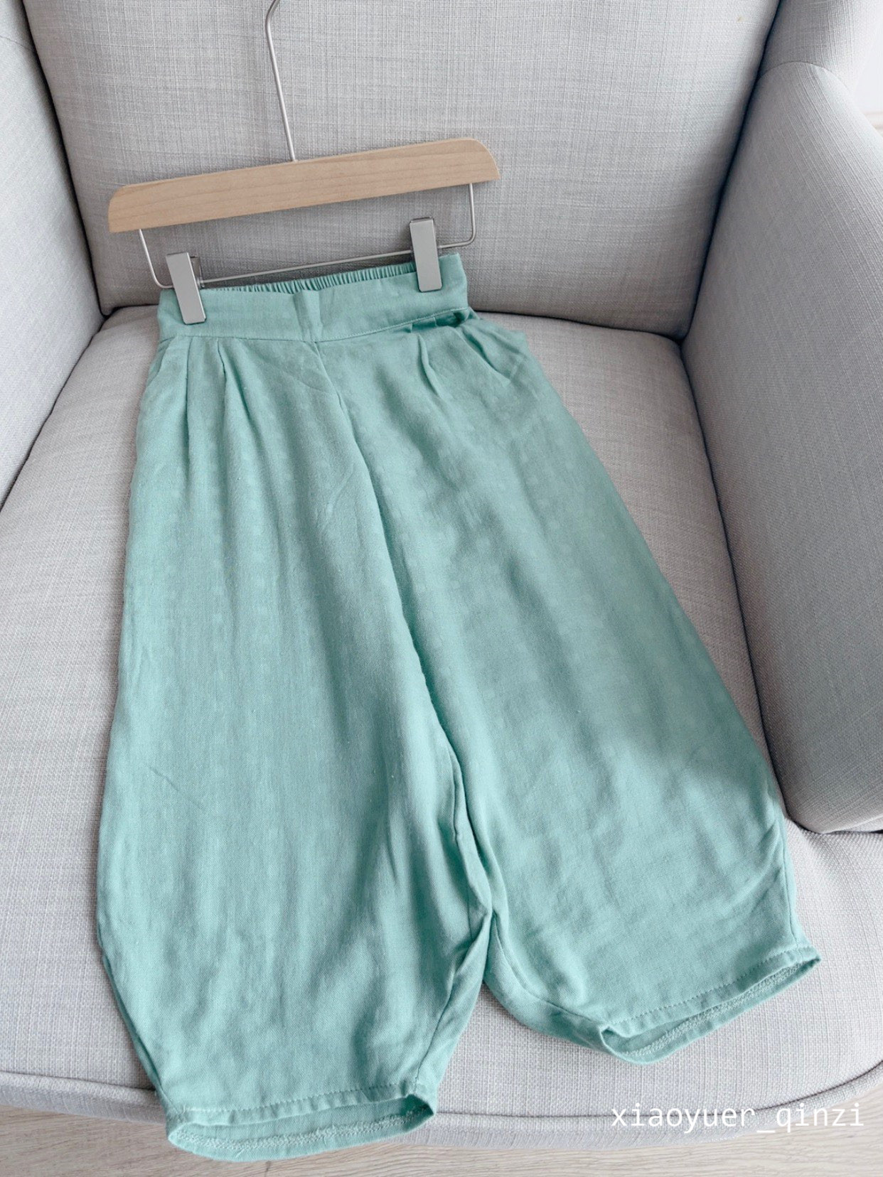 Children's two - color cotton yarn mosquito - proof pants girl Makaron wide leg nine - point pants pure cotton thin light - thin pants