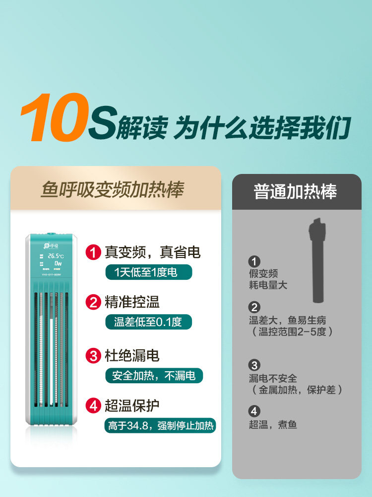 Safe and power-saving 50W (suitable for 20-30cm fish tank) Safe and power-saving 100W (suitable for 30-40cm fish) Safe and power-saving 200W (suitable for 40-60cm fish
